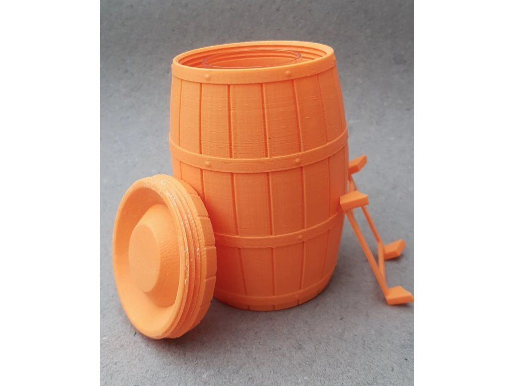 Sklenice není součástí balení – součástí je pouze 3D tištěný, ručně malovaný obal ve tvaru sudu.